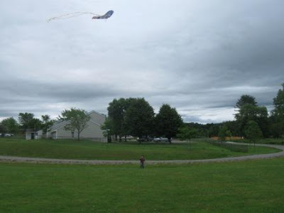 It was a rainy and blustery first day of summer break- the temps only reached 65 degrees and it was rainy most of the day. Ed tweaked his back, so he's dealing with that pain, Elijah was stir-crazy and we were all kind of out of sorts. Finally, we seized a break in the showers to literally "go fly a kite." It was kind of windy and the rec path has lovely open fields, perfect for kite flying!